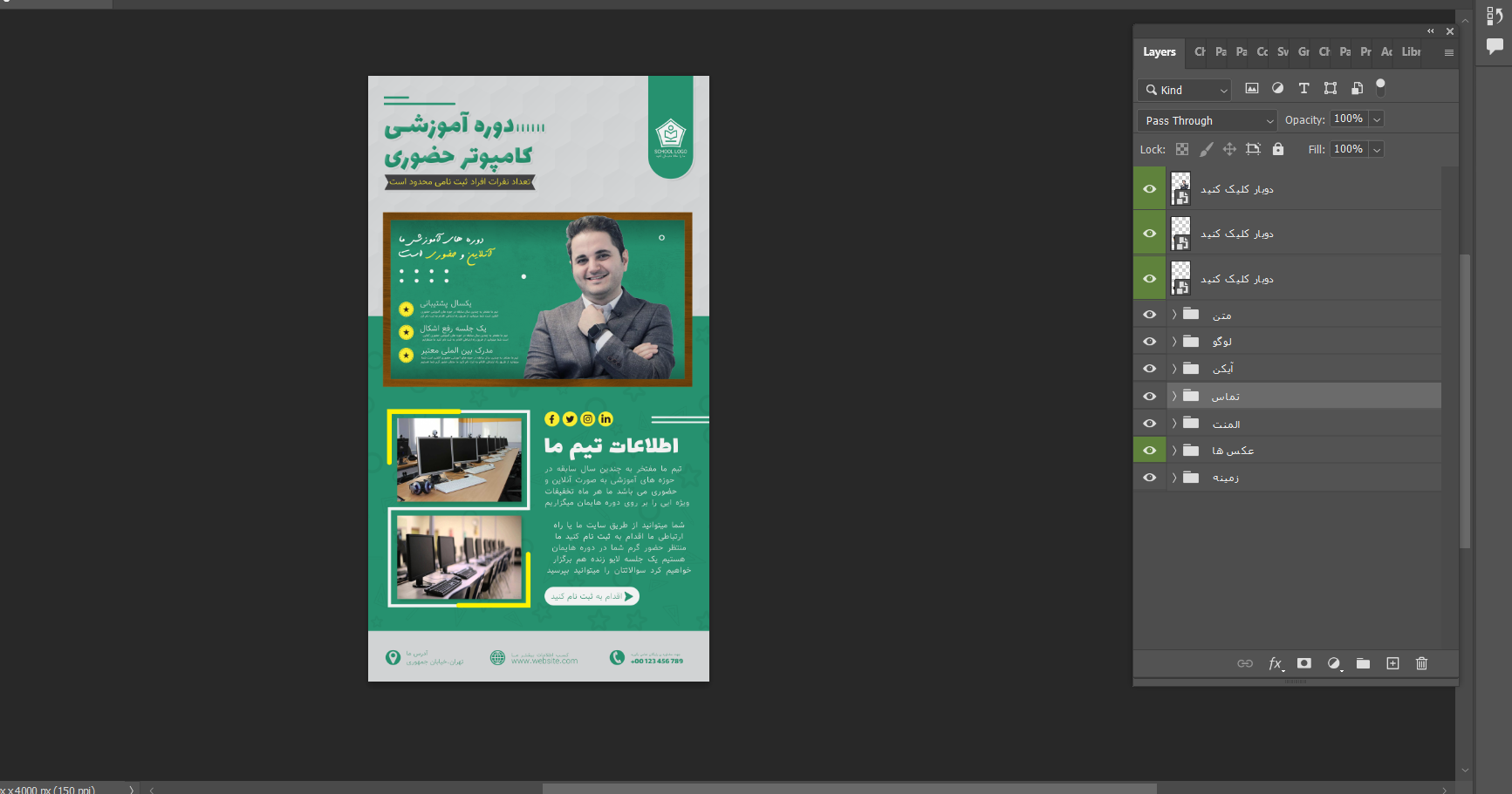 وارد پوشه fonts شوید و کلیه فونت ها را سلکت یا انتخاب کنید و بعد کلیک راست کرده و روی گزینه install کلیک میکنین تا نصب شوند. حال وارد فایل PSD خواهیم شد و ویرایش های دلخواهمون رو روی این طرح کاملا لایه باز لحاظ میکنیم.
