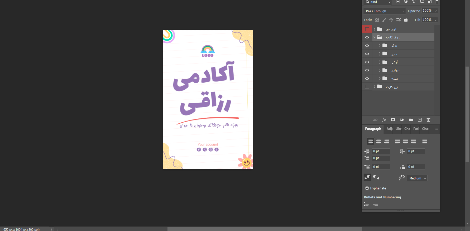 استفاده از مد رنگی RGB باعث میشود طرح در انواع صفحات نمایش با بیشترین شفافیت و جذابیت نمایش داده شود. لایهها کاملاً مرتب، گروهبندیشده و فارسی هستند تا امکان ویرایش سریع، روان و بدون سردرگمی را فراهم کنند. همچنین تمامی فونتهای استفادهشده در پکیج موجود و قابل نصب هستند؛ بنابراین بدون نیاز به جستجوی اضافی، میتوانید طرح را فوراً ویرایش کنید.