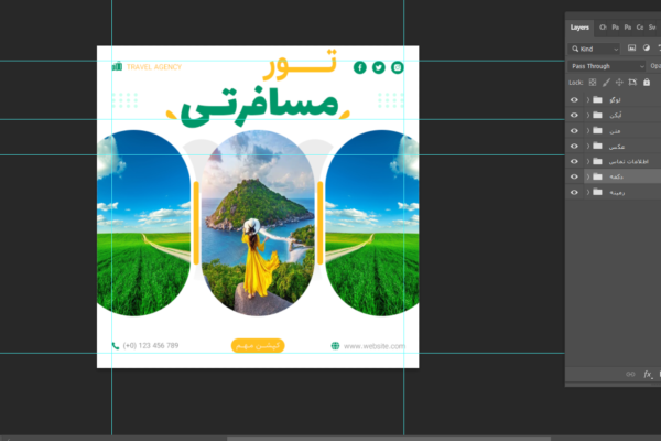 قالب لایه باز پریمیوم پست اینستاگرام تورهای گردشگری و مسافرتی psd