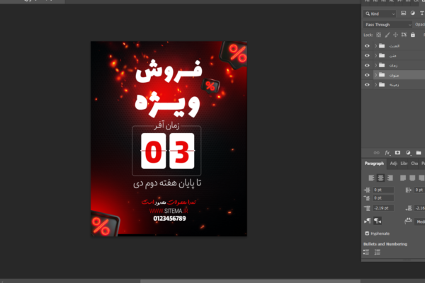 تمام لایهها فارسی، مرتب و دستهبندیشده هستند و به شما اجازه میدهند متنها، رنگها، عکسها و عناصر گرافیکی را در چند دقیقه شخصیسازی کنید. فونتهای استفادهشده نیز داخل پکیج قرار دارد تا بدون هیچ مشکل یا بههمریختگی، فایل را در فتوشاپ باز و ویرایش نمایید.