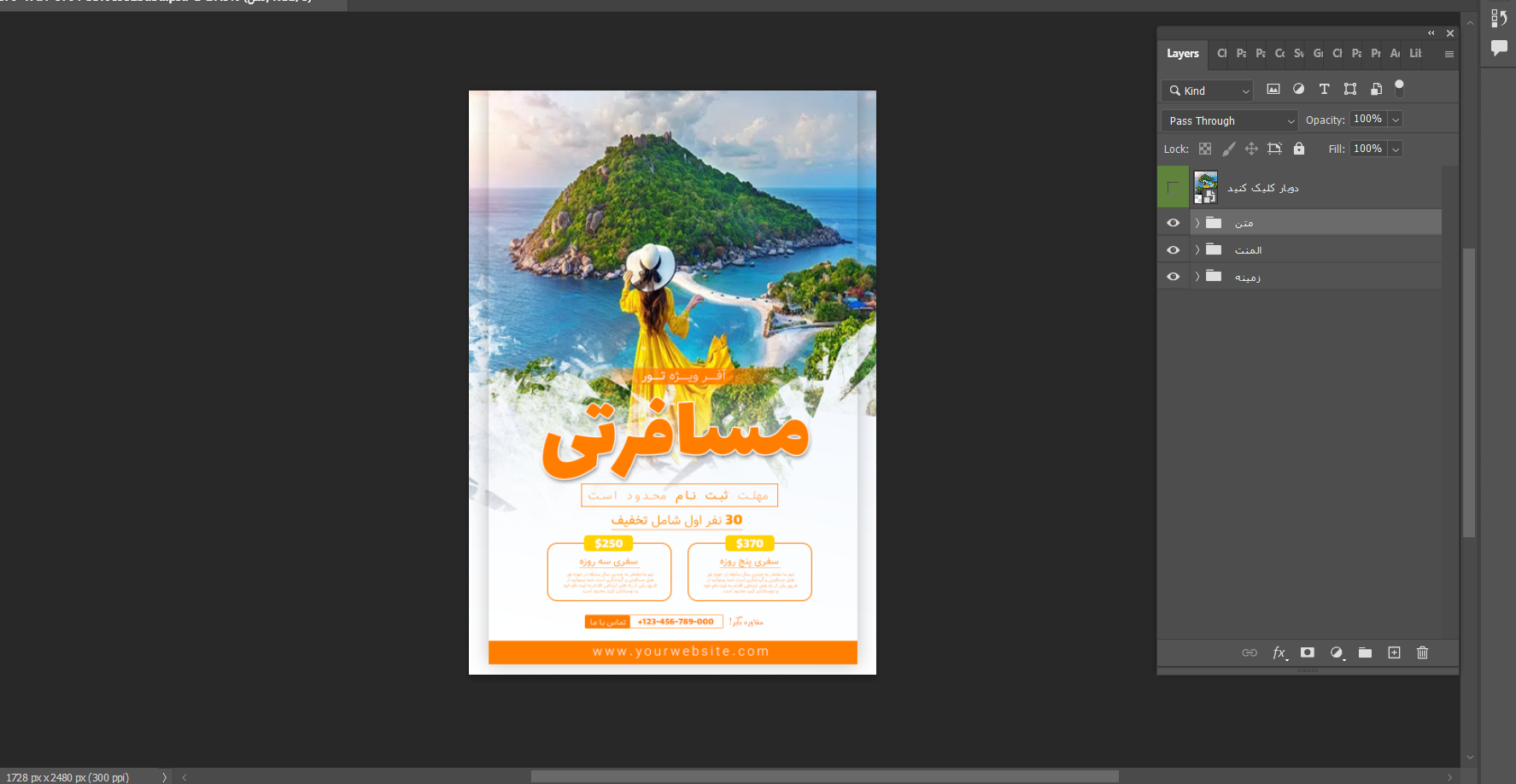 پوستر پریمیوم لایه باز تخفیف تورهای گردشگری و مسافرتی psd