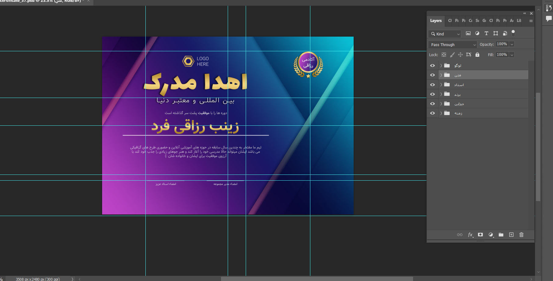 قالب لایه باز پریمیوم گواهی مدرک برای اهدا مدارک دوره ها psd